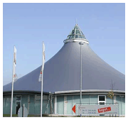 膜結(jié)構(gòu)可以從根本克服傳統(tǒng)結(jié)構(gòu)在大跨度 (無支撐)建筑上實現(xiàn)所遇到的困難,可 創(chuàng)造巨大的無遮擋可視空間,有效增加空 間使用面積。膜結(jié)構(gòu)最大可實現(xiàn)180米大 跨度。